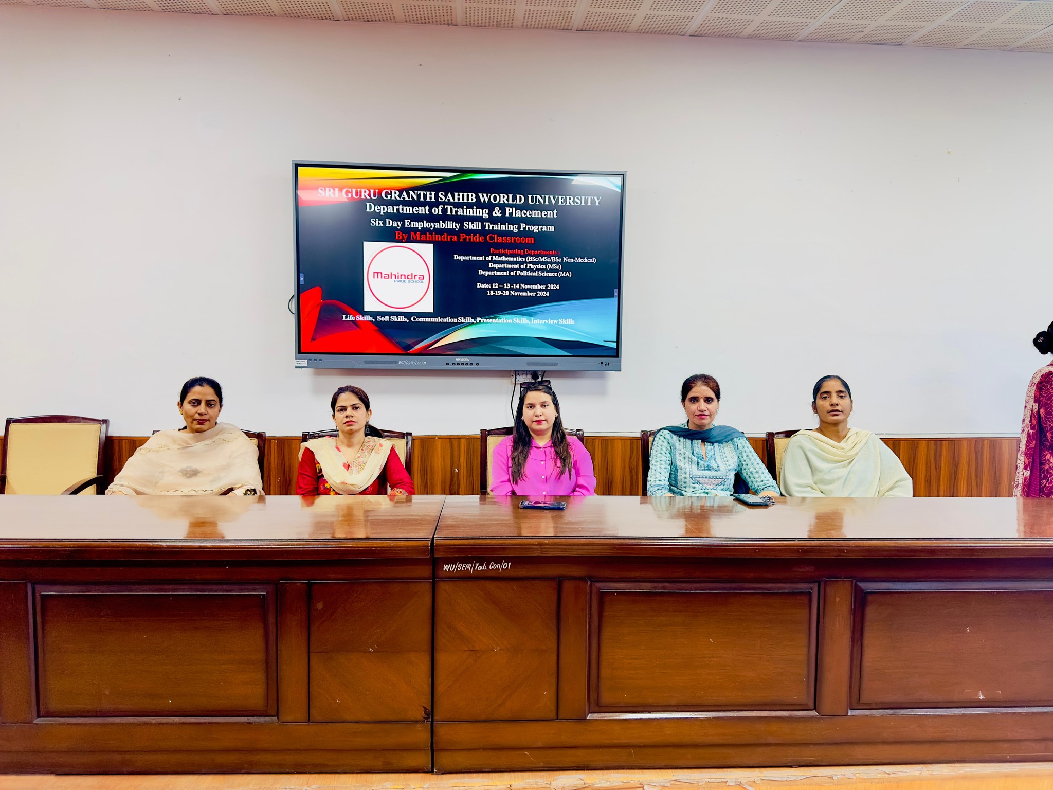 The Training and Placement Cell at Sri Guru Granth Sahib World University, Fatehgarh Sahib, successfully organized a six-day Employability Skills Training Program in collaboration with Mahindra Pride Classroom for final-year students from the Departments of Mathematics, Physics, and Political Science.