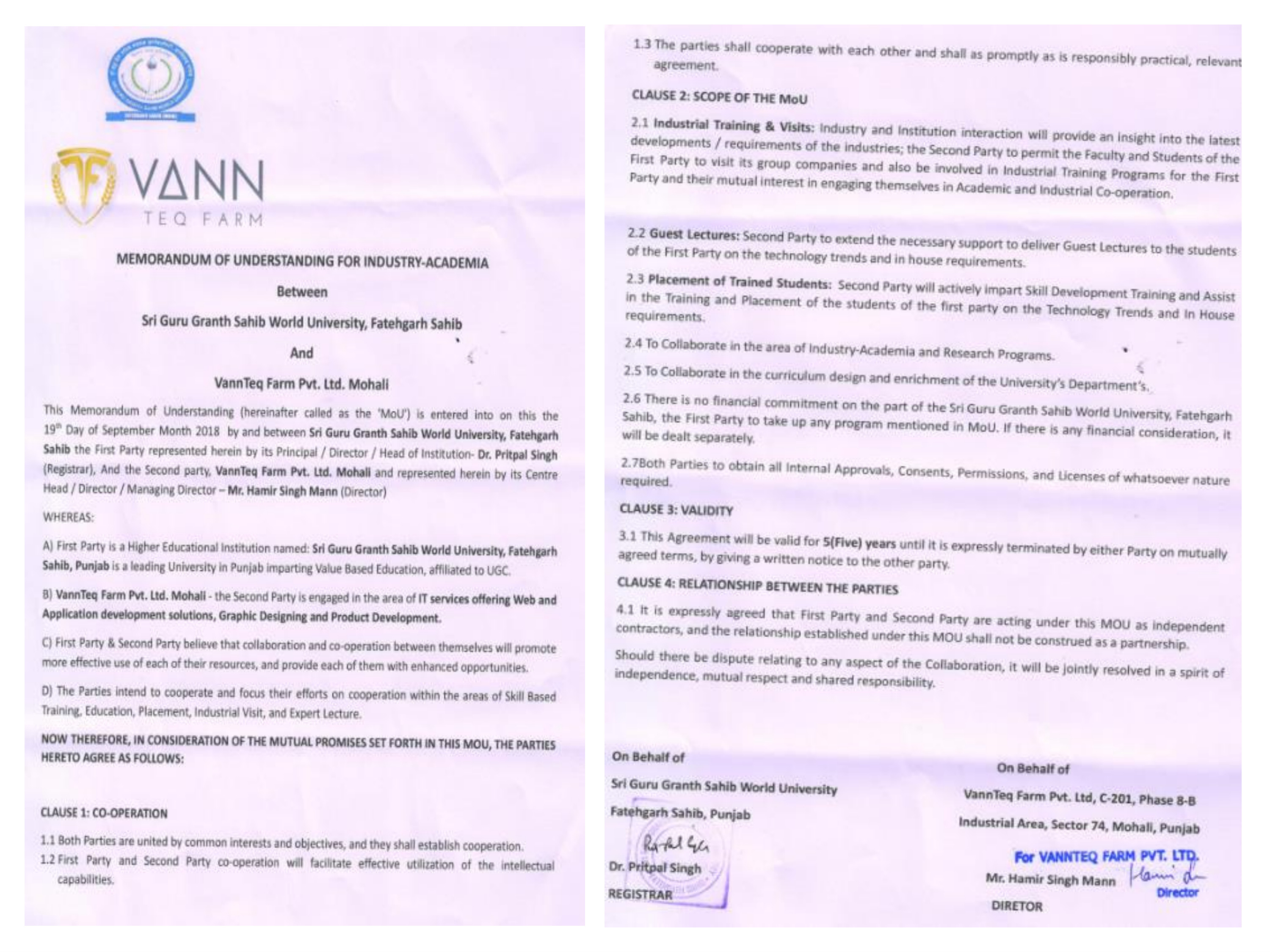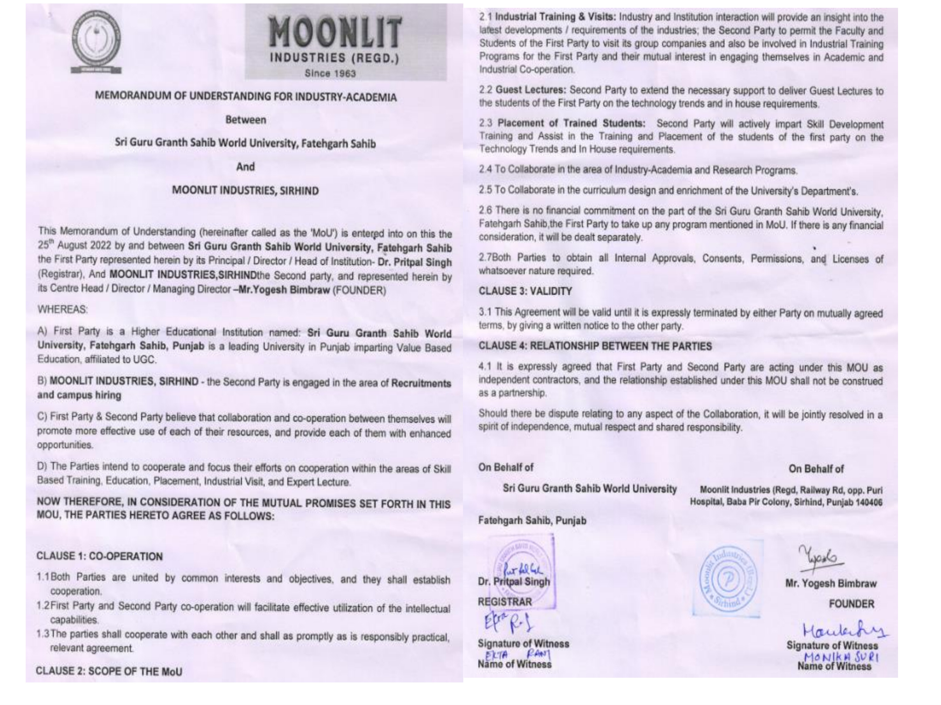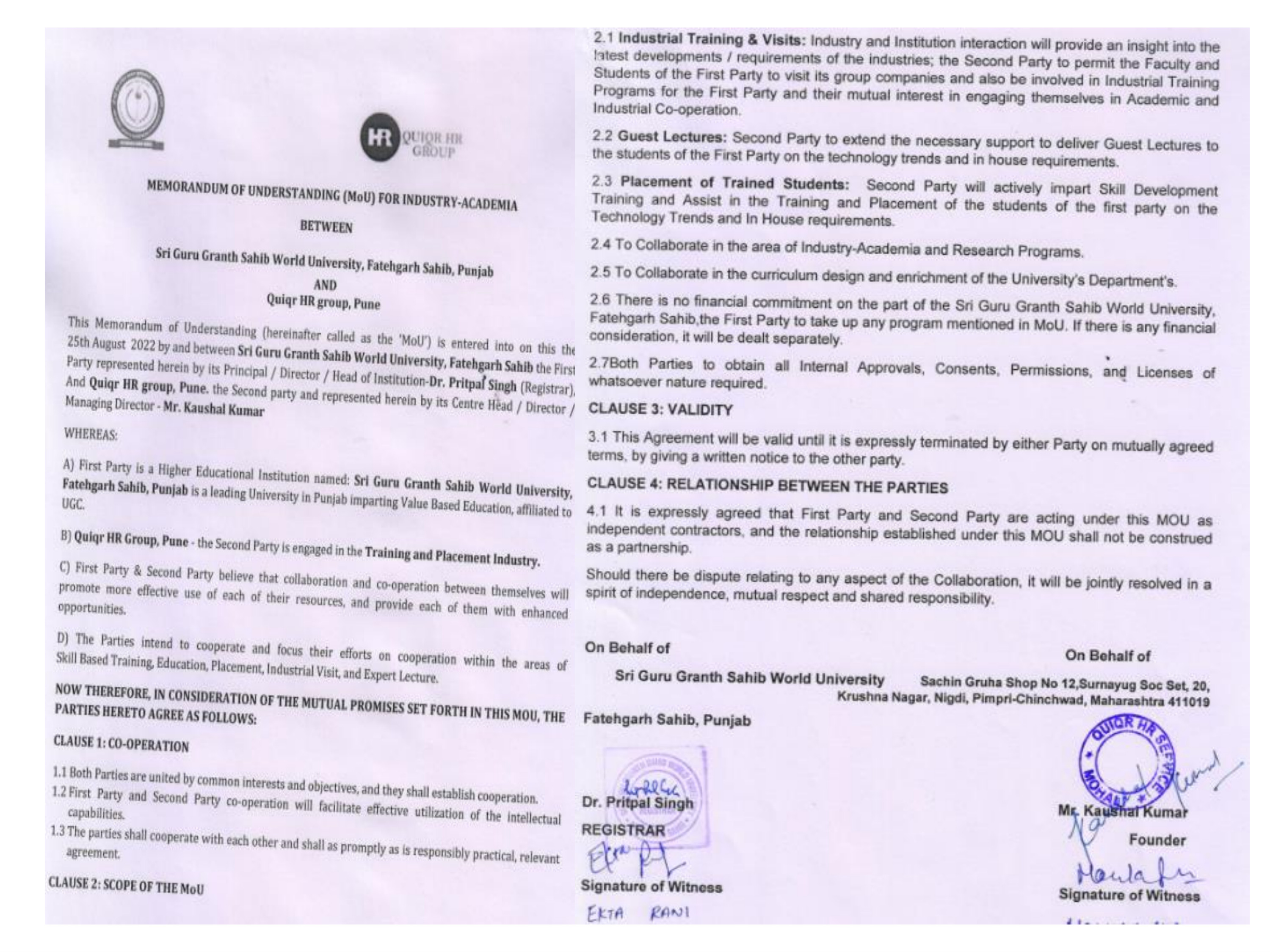The university actively collaborates with leading industries and organizations through strategic partnerships and Memoranda of Understanding (MoUs). These alliances are designed to enhance the academic environment by integrating real-world exposure, advanced technologies, and industry-driven best practices into the curriculum.