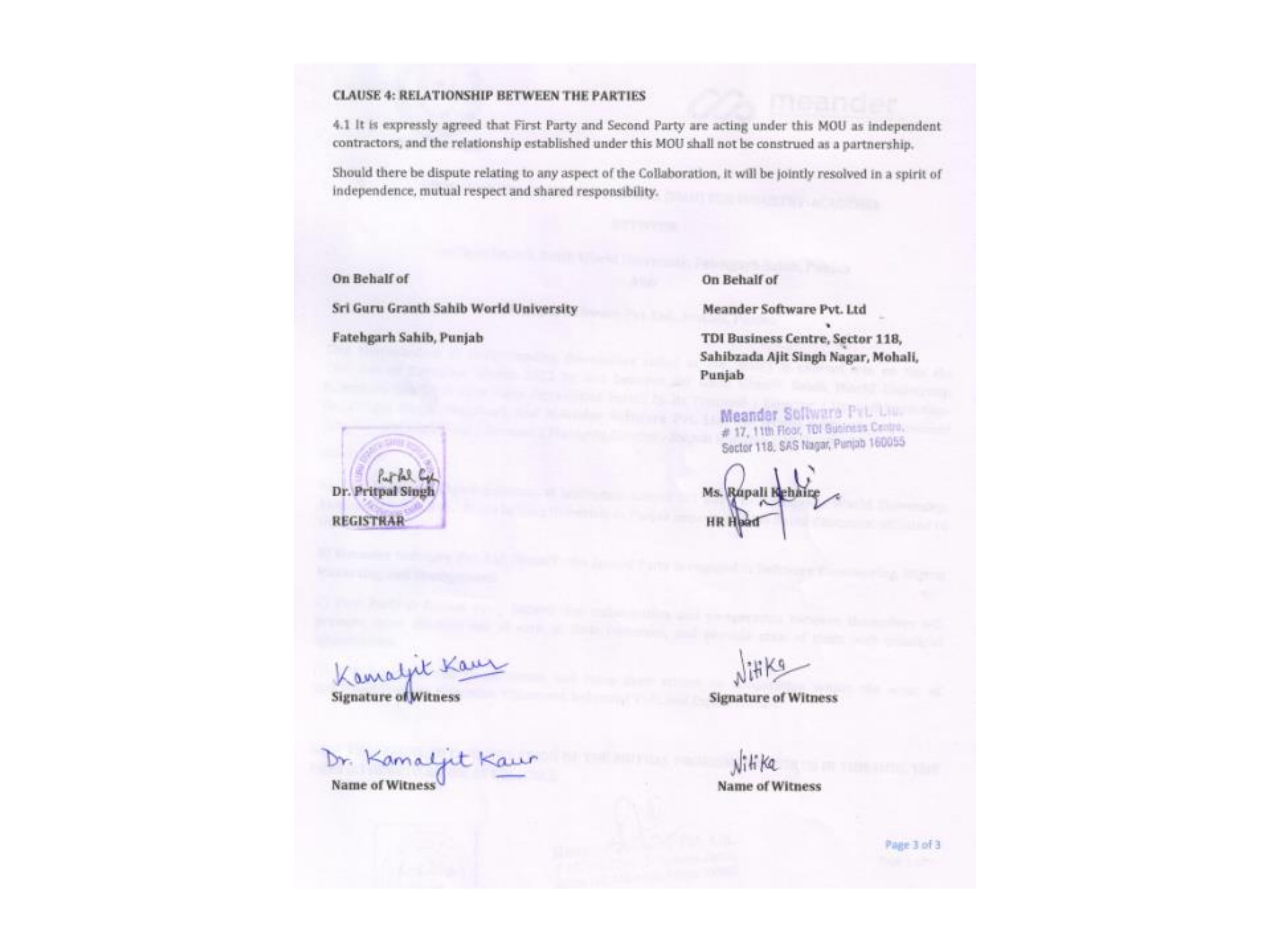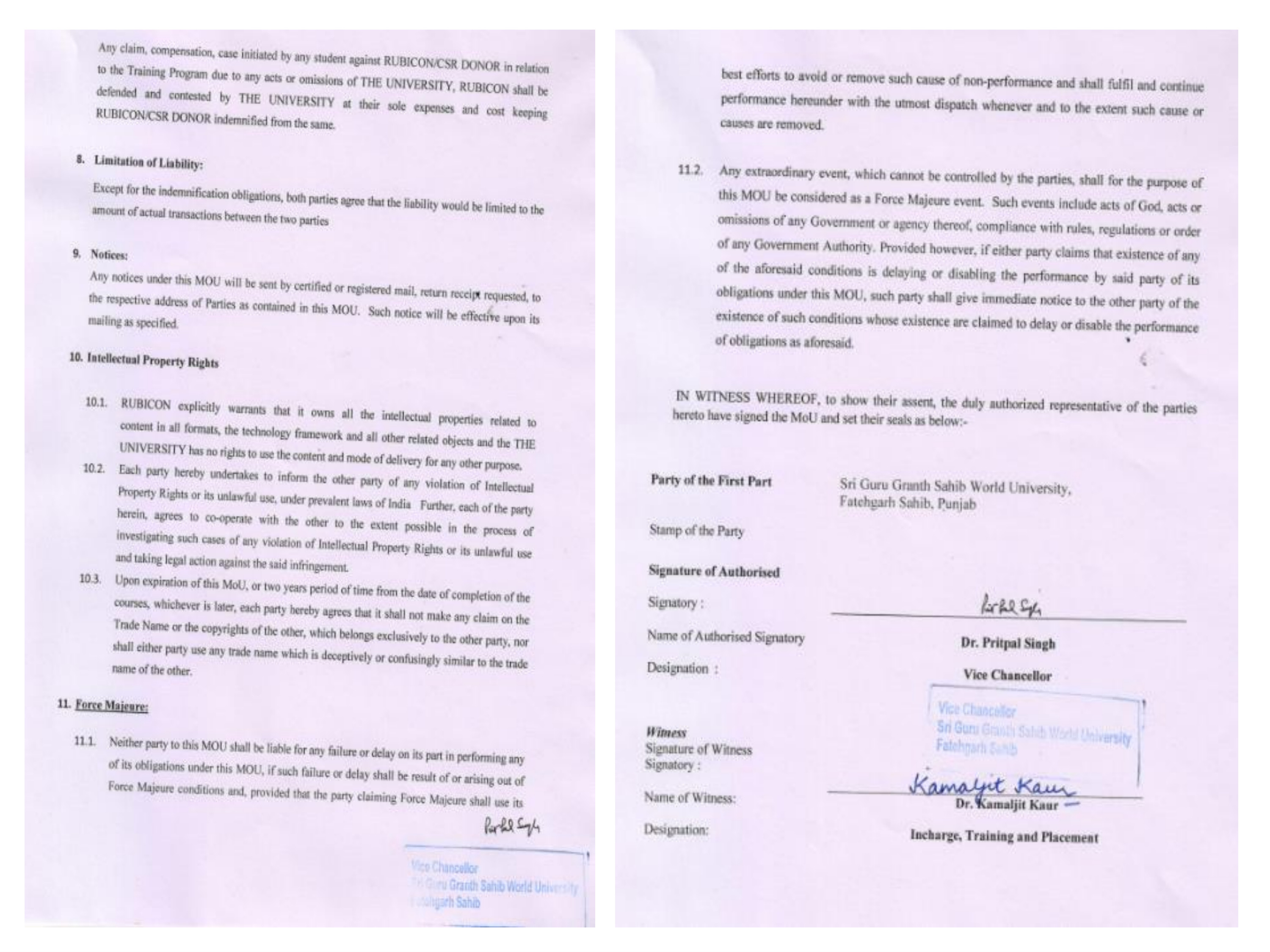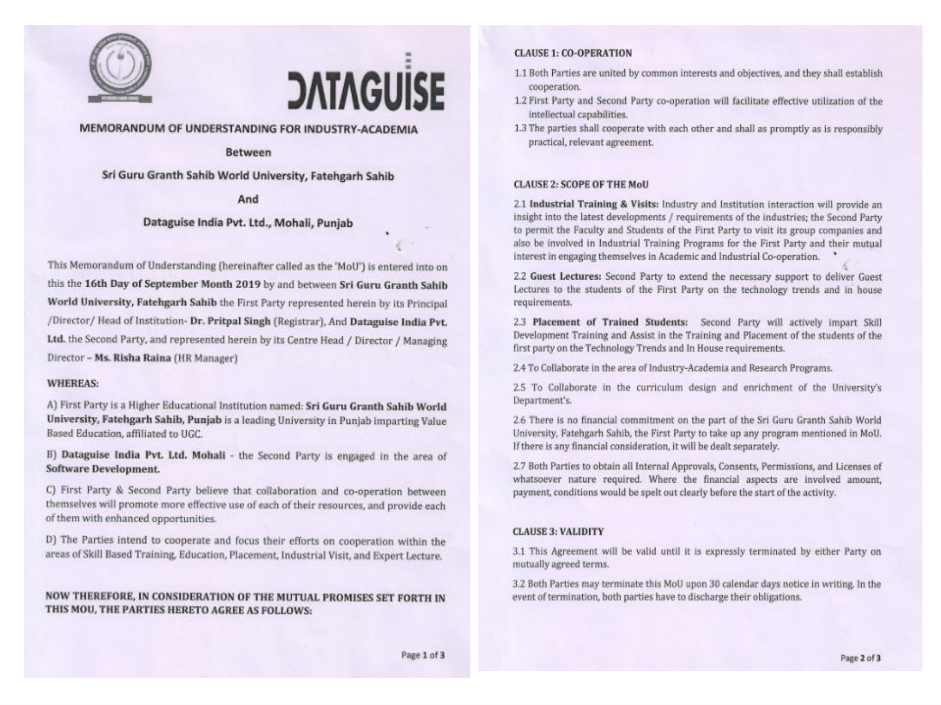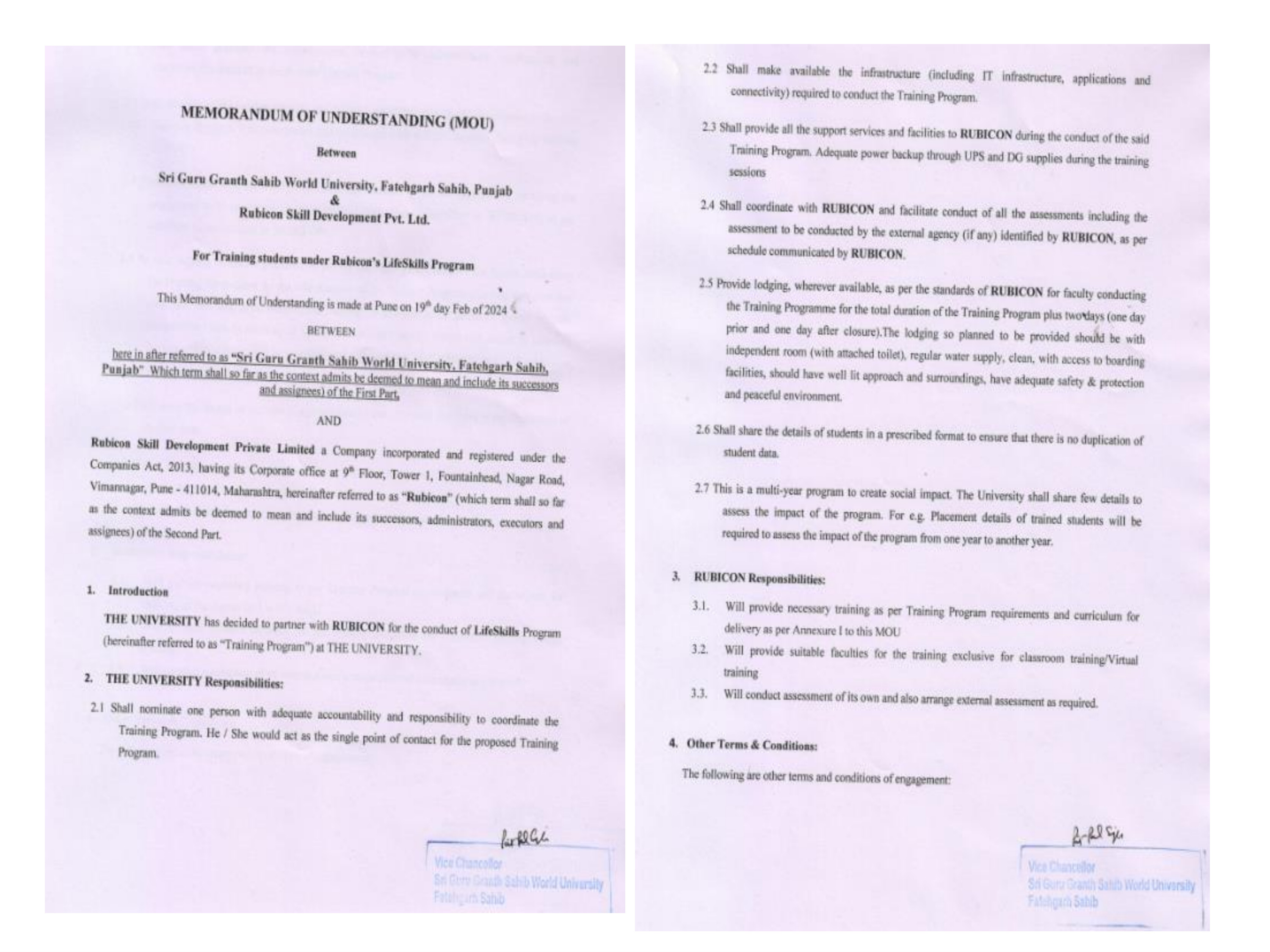 The university actively collaborates with leading industries and organizations through strategic partnerships and Memoranda of Understanding (MoUs). These alliances are designed to enhance the academic environment by integrating real-world exposure, advanced technologies, and industry-driven best practices into the curriculum.