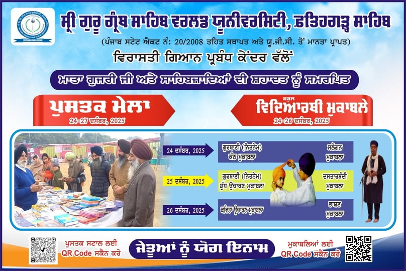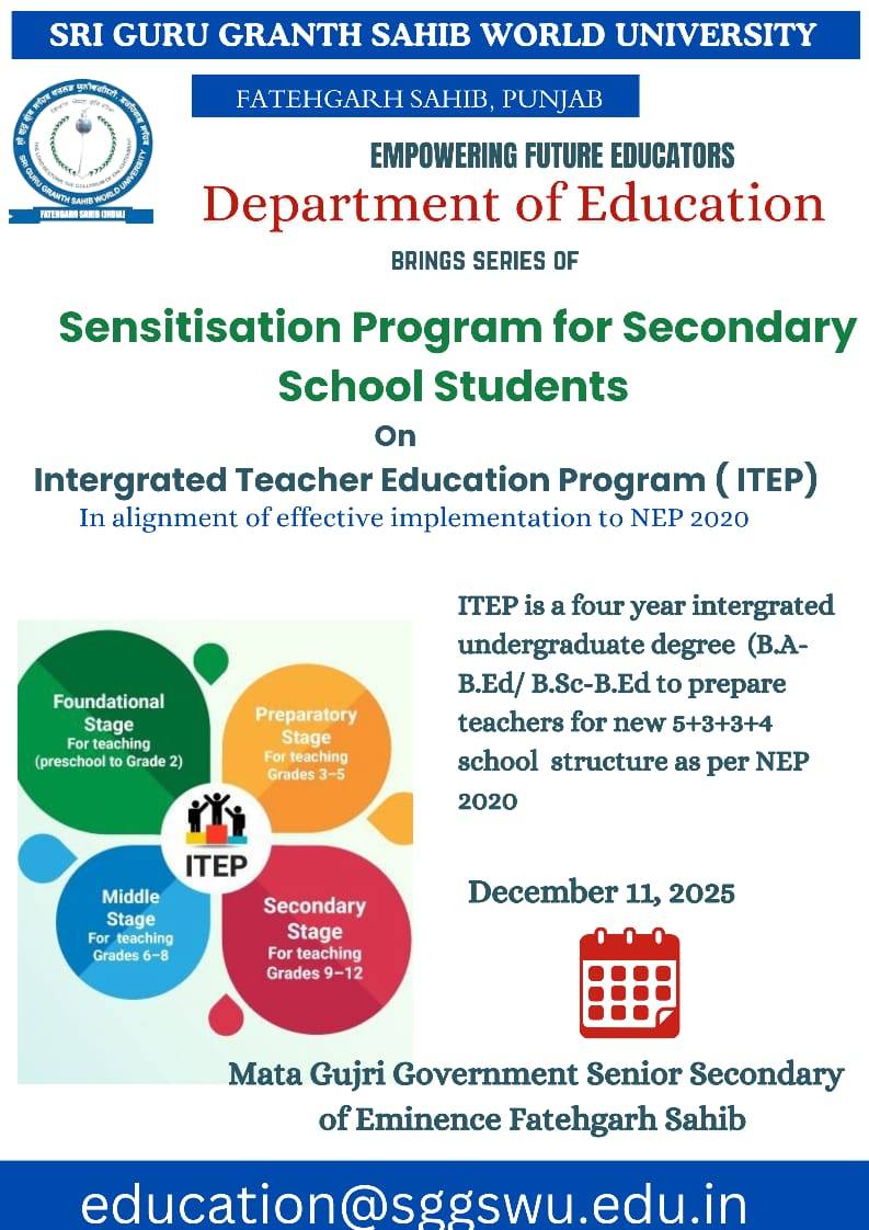 Sri Guru Granth Sahib World University (SGGSWU), located in the historic town of Fatehgarh Sahib, stands as a beacon of academic excellence, cultural preservation, and social responsibility. Established in 2008, the University exemplifies its mission to provide education that transcends barriers of caste, creed, gender, and religion. Spanning over 137 acres, the University harmonizes tradition with modernity, fostering a transformative learning environment that nurtures intellectual and moral growth.