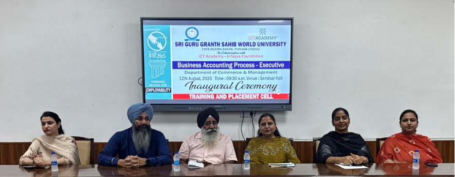 The Training and Placement Cell at Sri Guru Granth Sahib World University, Fatehgarh Sahib, successfully organized a six-day Employability Skills Training Program in collaboration with Mahindra Pride Classroom for final-year students from the Departments of Mathematics, Physics, and Political Science.