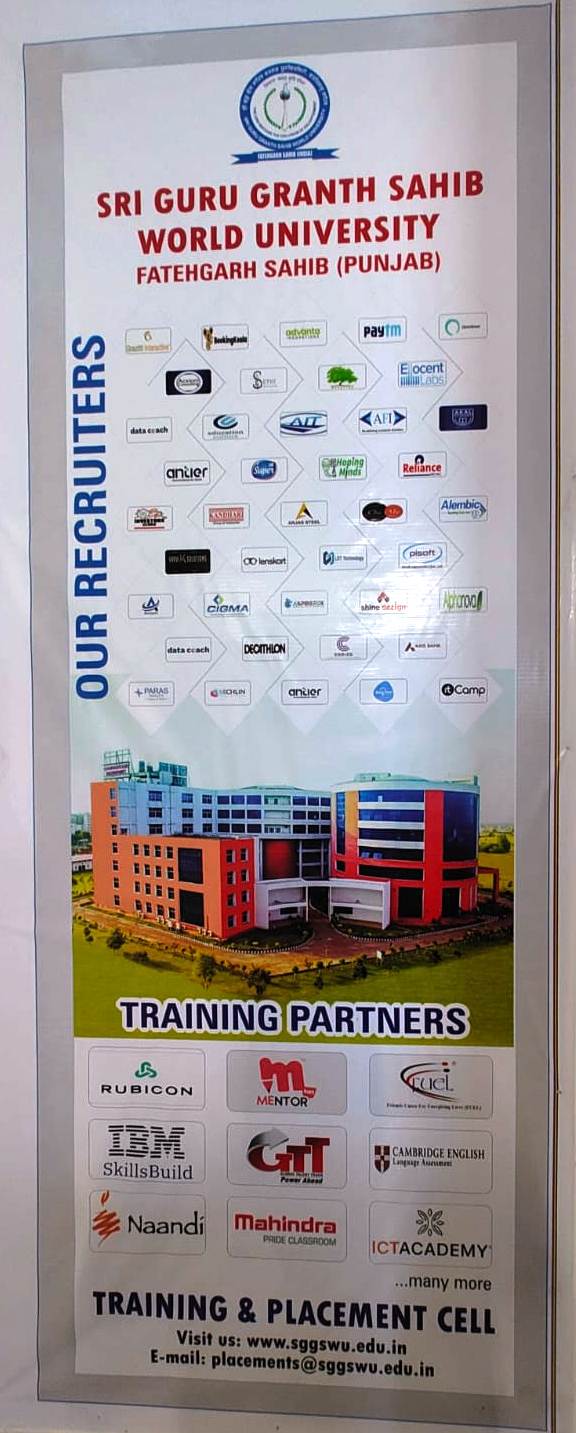 Sri Guru Granth Sahib World University, Fatehgarh Sahib, takes pride in its strong and growing association with leading organizations across diverse sectors. The University’s Training and Placement Cell works proactively to build long-term relationships with reputed national and multinational companies, ensuring excellent career opportunities for its students.