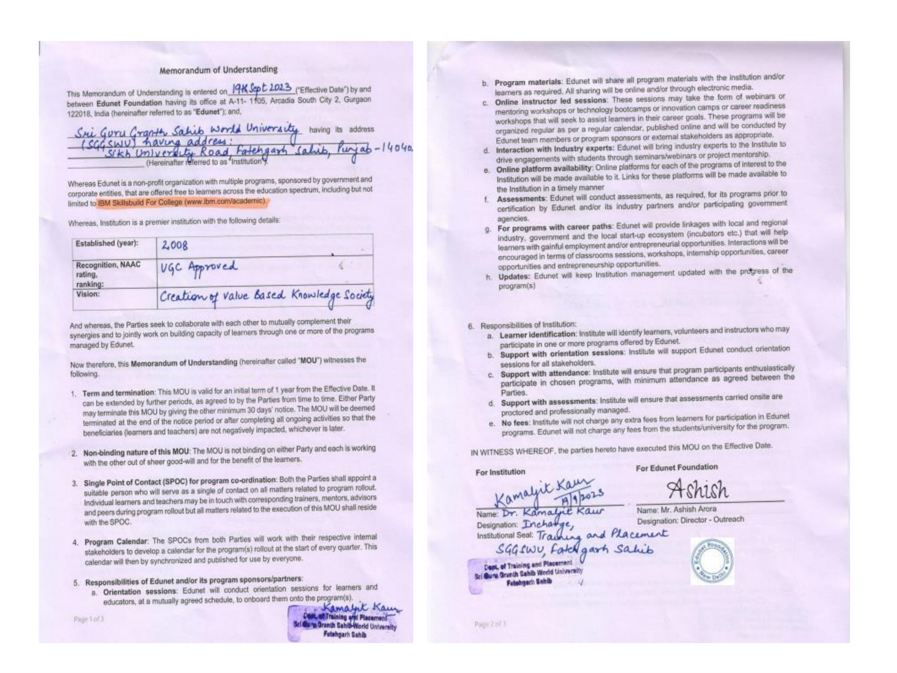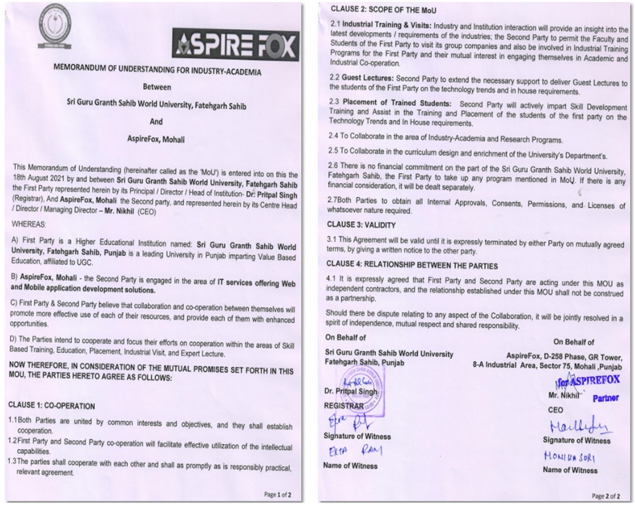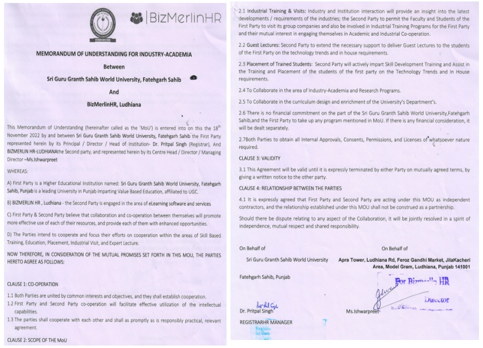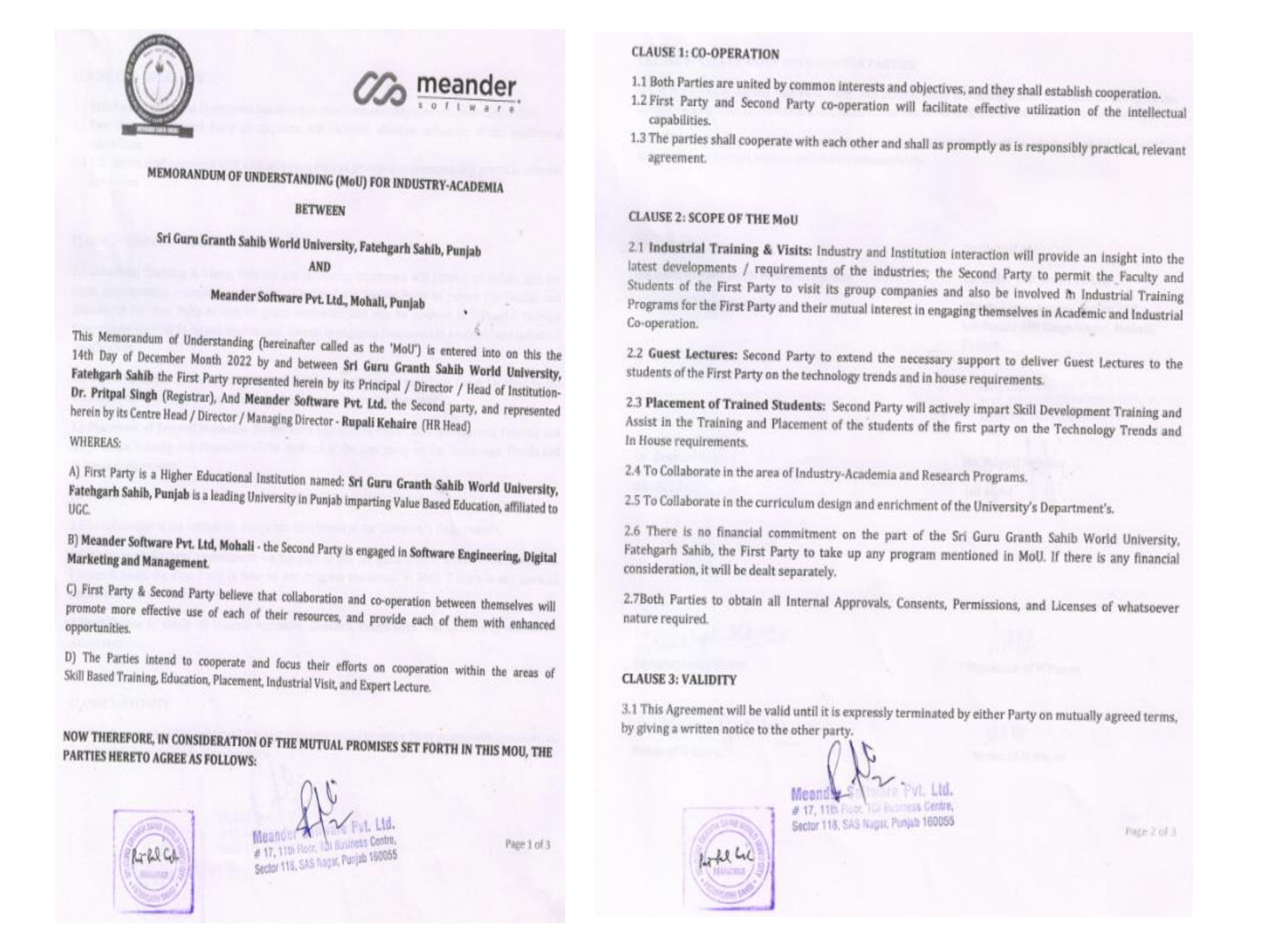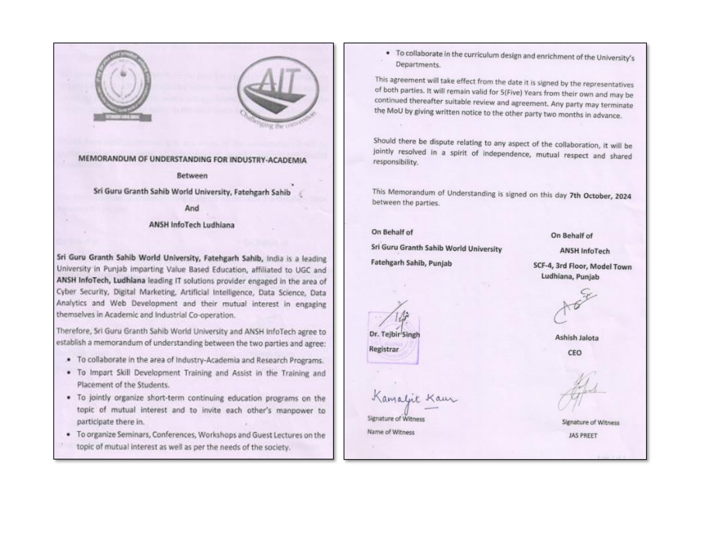 The university actively collaborates with leading industries and organizations through strategic partnerships and Memoranda of Understanding (MoUs). These alliances are designed to enhance the academic environment by integrating real-world exposure, advanced technologies, and industry-driven best practices into the curriculum.